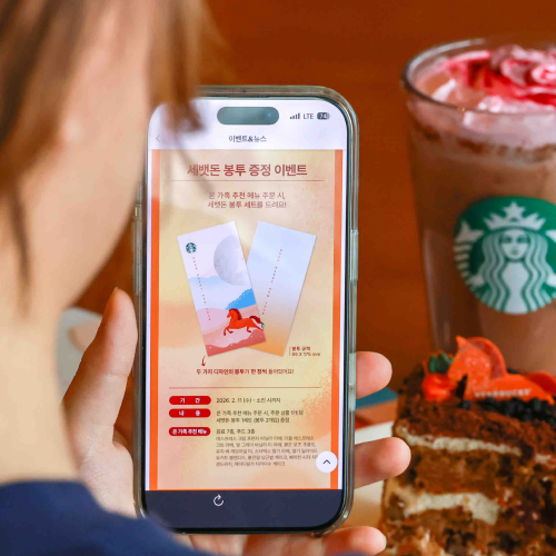 스타벅스 코리아(대표이사 손정현)가 2026년 병오년 설 명절을 맞아 이달 18일까지 ‘온 가족 추천 메뉴’를 이용하는 고객을 대상으로 ‘적마 세뱃돈 봉투’를 선착순 증정한다. 이번 이벤트는 세뱃돈 봉투에 대한 수요가 늘어나는 설 명절을 앞두고 특별한 세뱃돈 봉투를 찾는 고객들에게 즐거운 명절 분위기를 전하기 위해