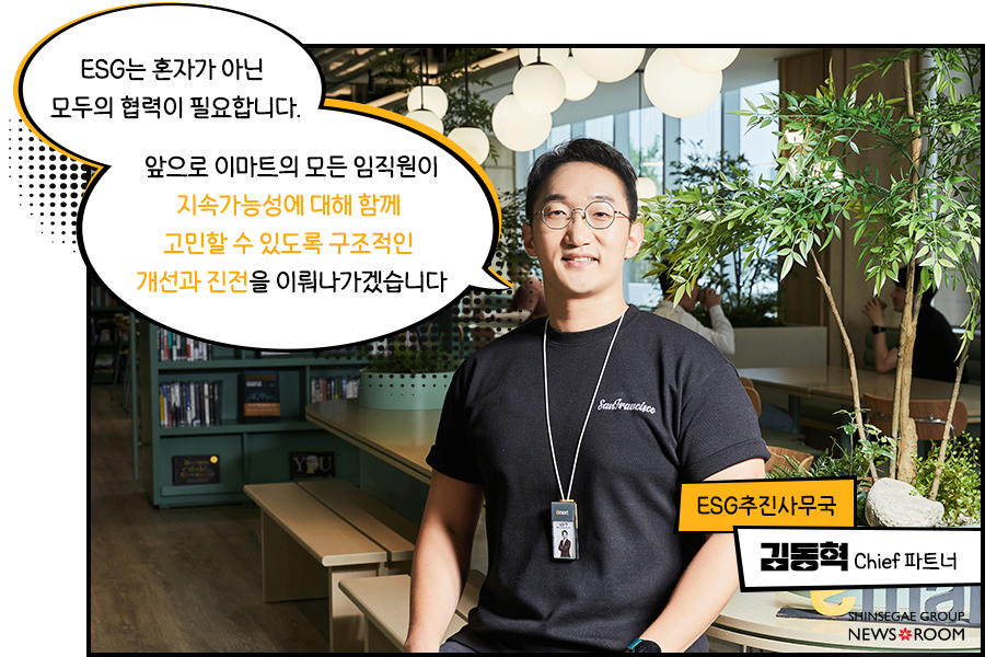 이번 편에서는 ESG추진사무국 김동혁 Chief 파트너를 만나 이마트가 앞으로 전개해 나갈 ESG의 방향성에 대해 들어봅니다.
