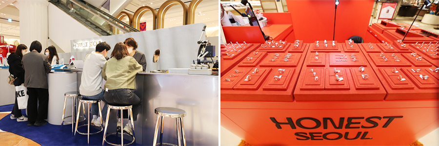 신세계백화점은 19일부터 25일까지 본점 1층에서 랩다이아몬드 전문 브랜드 ‘어니스트서울’ 팝업스토어를 열고 100여종의 반지를 비롯해 귀걸이, 목걸이, 팔찌 등 다양한 주얼리 상품을 선보인다. 팝업스토어에서는 최대 30%의 할인 혜택과 함께, ‘퍼스널 주얼리 어드바이저’의 1대1 맞춤형 컨설팅으로 피부 톤이나 평소 스타일에 잘 어울리는 주얼리를 추천받을 수 있다.
