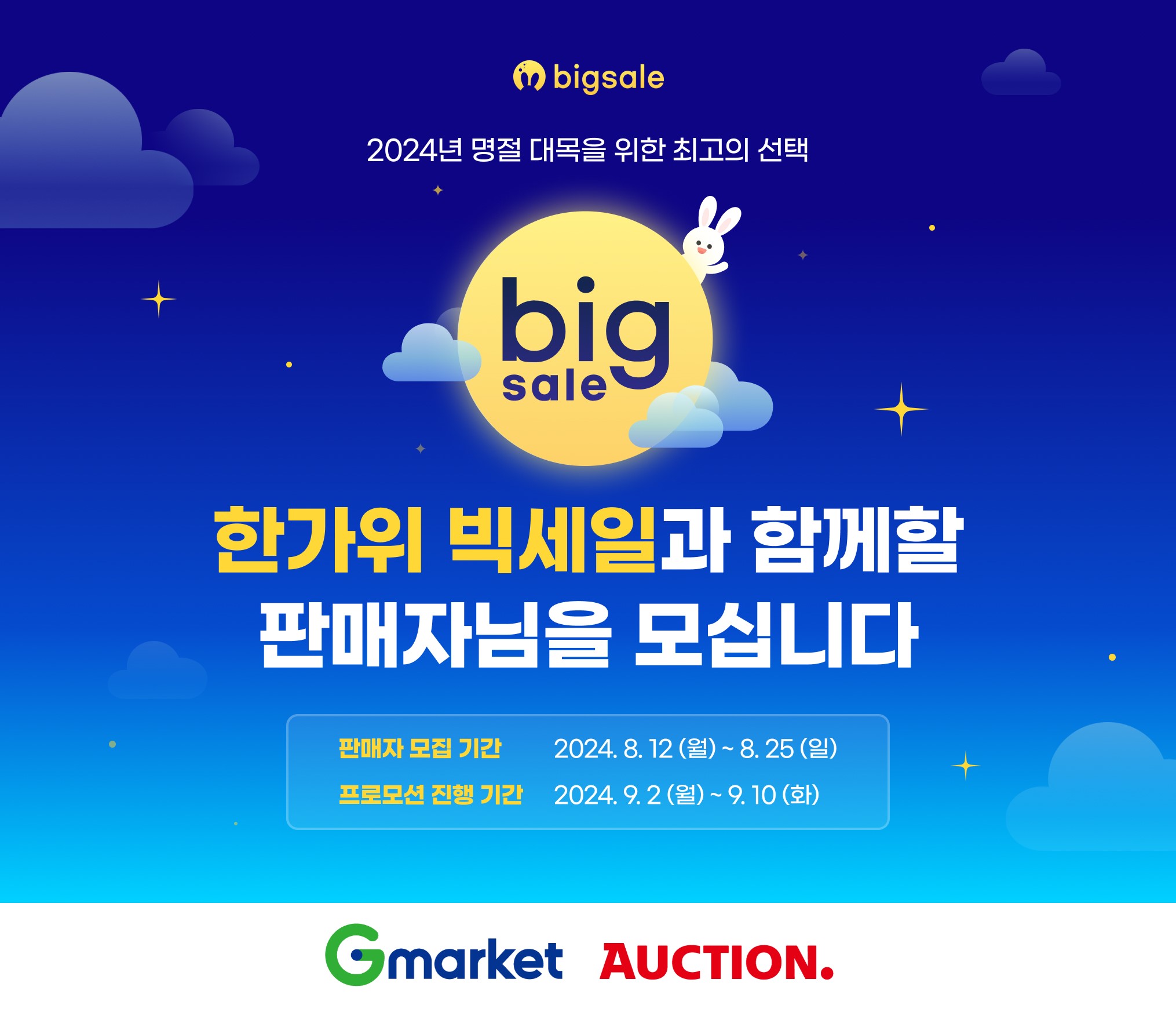 MEDIA 글자 크기 보통 크게 아주 크게 공유하기 페이스북 X 카카오톡 링크 복사 링크 복사됨 도구 보기 이미지 다운로드 G마켓, 25일까지 ‘2024 한가위 빅세일’ 참여 셀러 모집 2024.08.12 G마켓