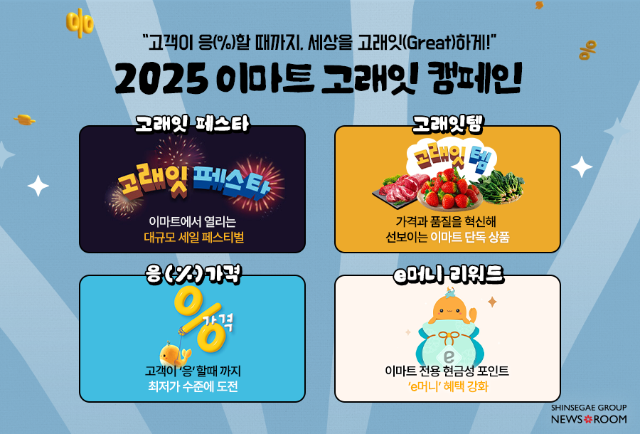 이마트는 이번 캠페인을 통해 업의 본질인 ‘EDLP(Everyday Low Price, 상시초저가)’를 구현하는 것을 넘어, 독보적인 상품, 차별화된 행사, 고객 친화적인 콘텐츠 등을 집대성해 완전히 새로워진 2025년의 이마트를 만들어 갈 예정이다.