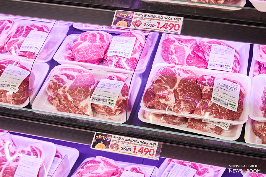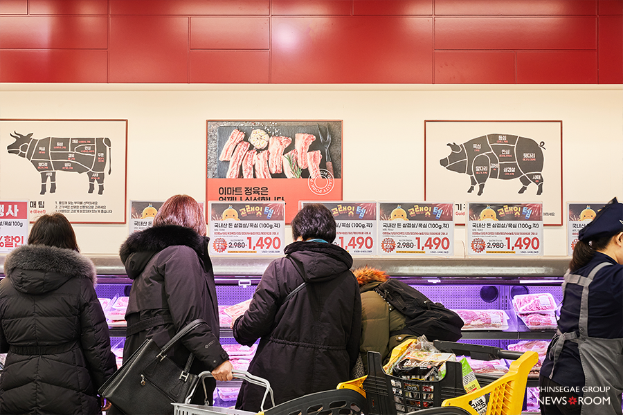 축산 코너에서 만난 이혜정(64) 고객은 “삼겹살만 사서 나가려고 카트도 안 끌고 들어 왔는데, 생각보다 오늘 세일템이 많아서 아예 장을 보고 가려고 한다”라며 “특히 삼겹살은 작년에도 행사할 때마다 사곤 했는데, 올해는 더 싸게 살 수 있어서 만족스럽다”고 말했다.