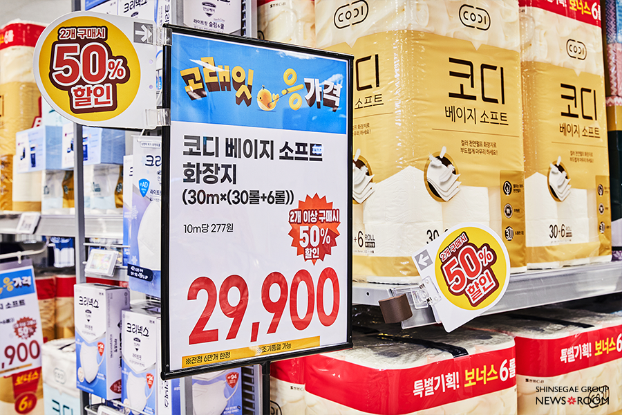 이 외에도 화장지, 바디로션, 섬유유연제, 면도기 등 일상용품 각 카테고리 대상으로도 품목별 2개 이상 구매 시 50% 할인을 진행했다.