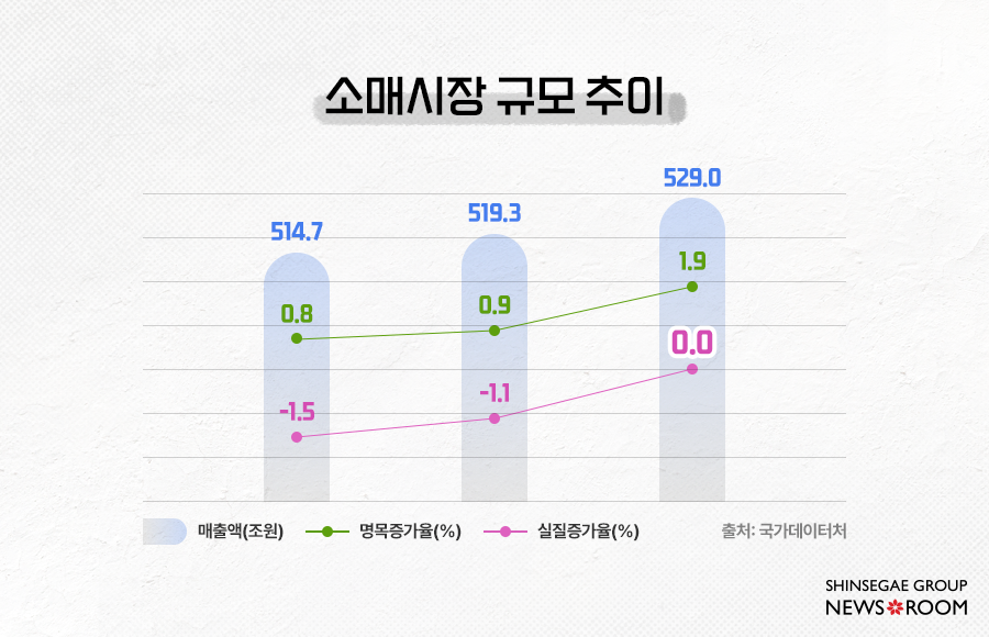 2026년 전체 소매시장은 올해보다 소폭 개선된 1.9% 성장이 예상되나, 인플레이션 효과를 제외한 실질 성장률은 사실상 0%인 ‘제로성장’에 가깝습니다. 결론적으로 소매 시장이 가시적으로 개선되기는 어려울 것으로 보입니다.