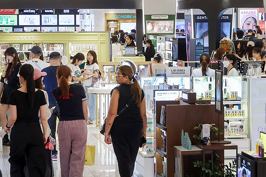 신세계면세점에서 외국인 관광객들이 쇼핑을 하고 있다