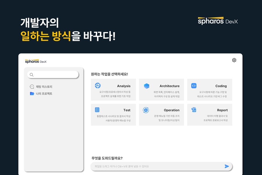 ‘스파로스 데브엑스’에는 코딩 에이전트를 비롯한 AI 에이전트들이 하나의 플랫폼에 탑재되어 △시스템 분석 △설계 △개발 △테스트 △품질점검 △운영 단계까지 IT서비스 업무 전 과정을 지원한다. 단순한 코딩 자동화 수준에서 한발 더 나아가 IT서비스의 업무 단계 별 최적화된 AI 에이전트를 활용해 개발 생산성을 극대화한다. 시스템 개발 프로젝트에서 요구되는 수백 페이지 분량의 문서 작성, 소스코드 생성, 테스트를 통한 오류 검증 등 전 과정에서 활용된다.