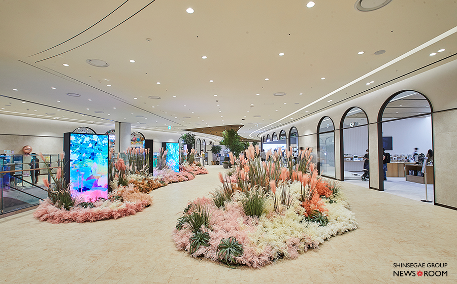 6층 실내 정원은 강변을 따라 일렁이는 핑크 뮬리가 만개한 모습으로 꾸몄다. 총천연색으로 가득 찬 이곳에서 연인, 가족 단위 등 다양한 고객들은 셀카를 찍으며 행복한 시간을 즐겼다.