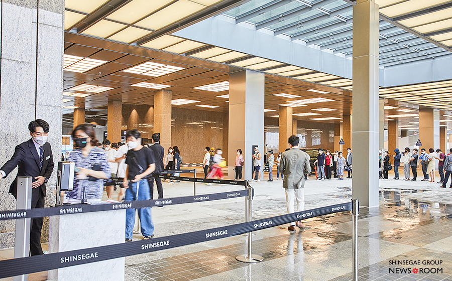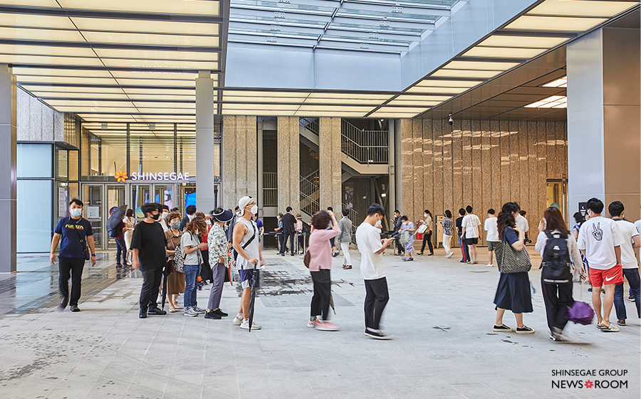 대전신세계 Art & Science가 문을 연 8월 27일, 신세계그룹 뉴스룸이 그 현장을 찾았다. 종일 비가 내렸지만 오픈 한시간여 전부터 고객들은 길게 줄을 늘어섰다. 백화점 4층에서는 개점을 알리는 붉은색 속옷을 판매하는 대형 행사가 열렸다.