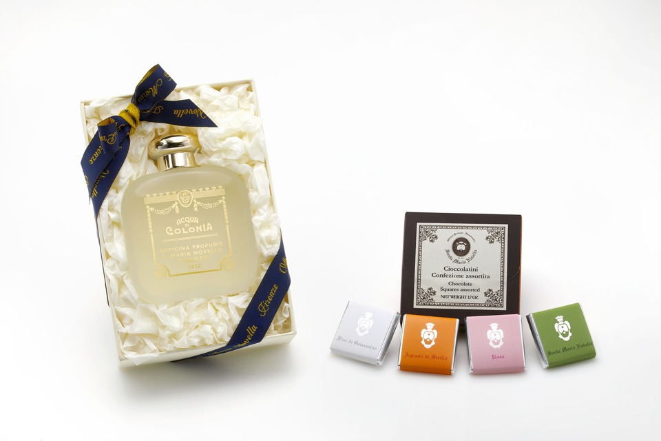 초콜릿 스퀘어 어소티드는 산타 마리아 노벨라의 ‘아쿠아 디 콜로니아’ 향수 중 시칠리아, 젤소미노, 로사, 산타 마리아 노벨라 등 4가지 향을 재해석해 이탈리아 피렌체 산타 마리아 노벨라에서 직접 초콜릿으로 제작한 것이다. 스위트 오렌지, 레몬, 베르가못 등의 에센셜 오일을 함유한 ‘시칠리아’ 맛과 자스민 에센셜 오일을 첨가한 ‘젤소미노’ 맛 밀크 초콜릿, 장미 에센셜 오일을 담은 다크 초콜릿 ‘로사’, 스피어 민트, 페퍼민트 등의 민트 맛 초콜릿 ‘산타 마리아 노벨라’로 구성됐다.