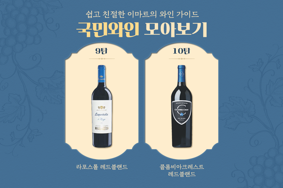 최근 정말 오랜만에 국민와인 9탄과 10탄이 동시에 출시되었습니다. 그중 하나가 바로 이 와인입니다. 국내 수입 시 3만 원 이상의 판매가격을 형성하는 20개의 주요 국가 레드블랜드 중 소믈리에 블라인드 테이스팅을 통해 1위를 차지한 와인이죠.