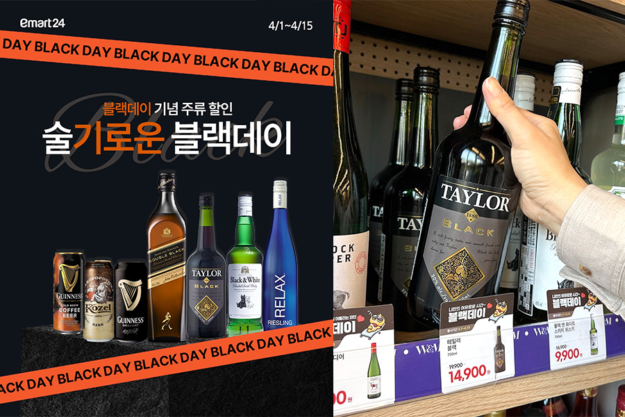 이마트24가 블랙데이(4월 14일)를 맞아 1일(화)부터 15일(화)까지 ‘블랙’을 콘셉트로 한 주류 할인행사를 펼친다.