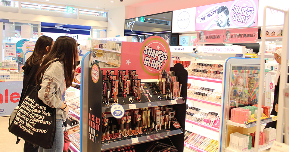 부츠의 강점인 자체 브랜드 라인 중에서는 젊은 고객을 겨냥한 자체 브랜드 ‘솝앤글로리’를 전면에 앞세웠다.
