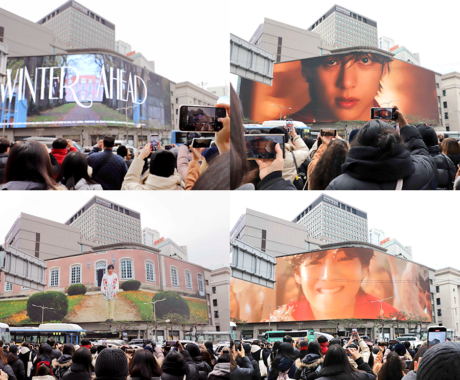 신세계백화점 본점 본관 신세계스퀘어에서는 내달 13일까지 방탄소년단 뷔와 명품 보컬 박효신의 디지털 싱글 ‘Winter Ahead (with PARK HYO SHIN)’ 뮤직비디오를 만나볼 수 있다.
