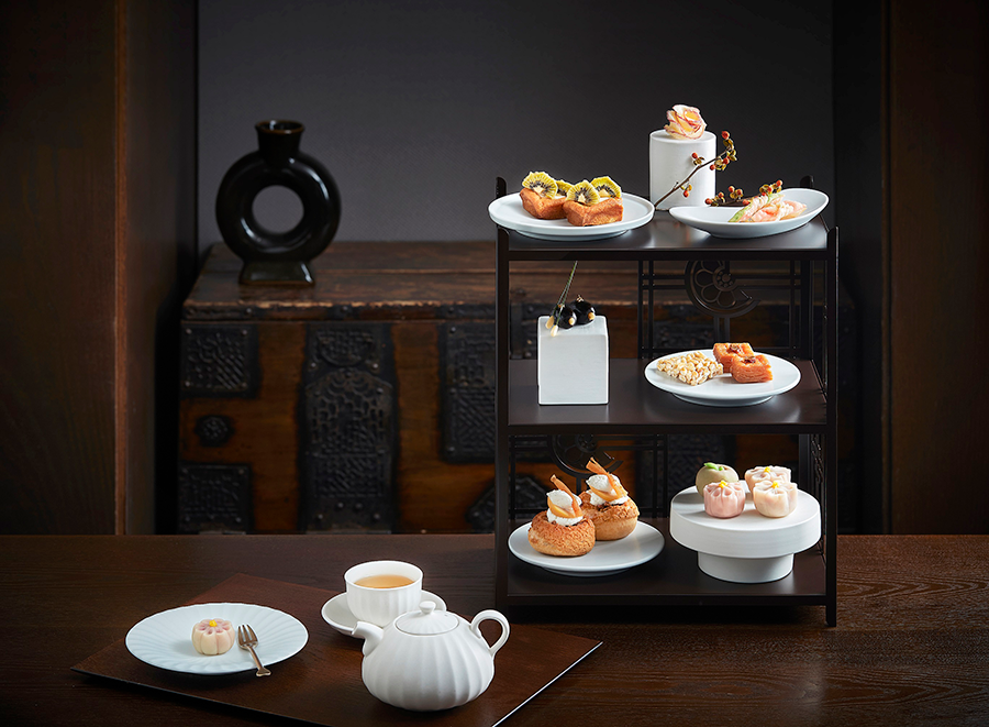 여백의 미가 돋보이는 광주요와 청사초롱 모티브에 기와 문양 디자인을 접목해 주문 제작한 트레이에 담아내 더욱 특별한 티타임을 선사한다.