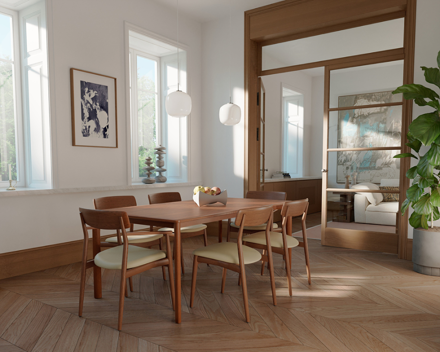 MK2 다이닝 시리즈는 소프트 모던(SOFT MODERN) 스타일을 기반으로 한 부드럽고 내추럴한 컬러감과 정제된 디자인이 특징이다. 원목 고유의 아름다운 결을 살린 깊이 있는 색감과 섬세한 마감으로 완성한 고급스러운 분위기, 다양한 톤 앤 매너의 인테리어에 자연스럽게 어우러지는 점 등이 강점으로 평가받고 있다.