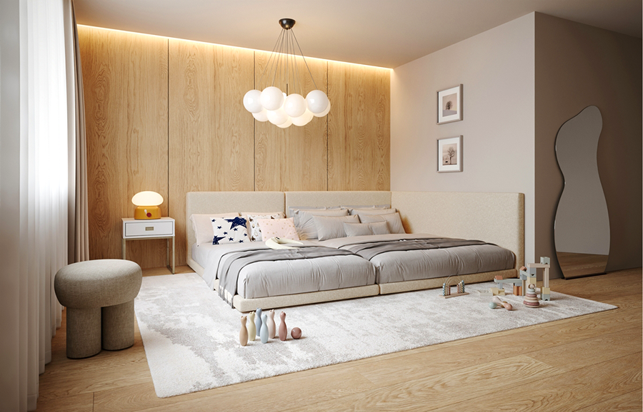 SS와 Q사이즈 두 가지 기본 침대 프레임에 탈부착이 가능한 3가지 사이즈 모듈형 가드, 디자인과 높낮이가 다른 총 3종류의 다릿발 옵션을 활용해 일반형 침대부터 저상형 패밀리 베드, 유아용 데이베드까지 자유롭게 조합 · 변형할 수 있다. 신혼부터 아이가 태어나고 자라기까지 가족의 생애 주기에 따라 맞춤형 침대를 만들어 쓸 수 있어 효율적이며 경제적이다.