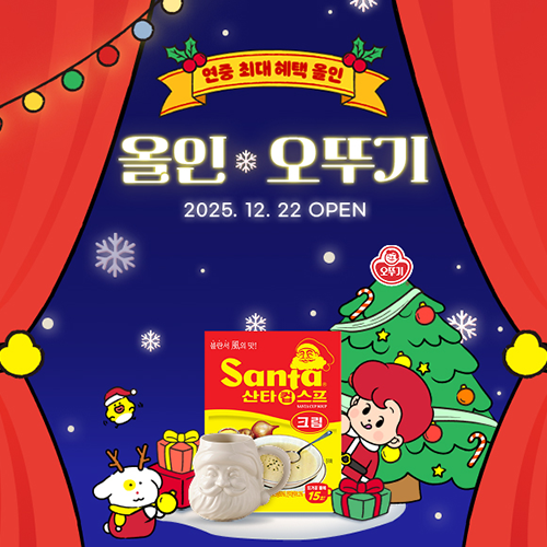 G마켓, 22일 단 하루 ‘오뚜기’ 제품에 연중 최대 혜택 ‘올인’… 1,900원 선착순 타임딜! 크리스마스 단독 기획 구성도 선봬G마켓이 22일(월) 원데이 브랜드 프로모션 ‘올인’ 오뚜기 편을 열고, 하루 동안 다양한 단독 혜택을 선보인다. 오뚜기 인기 제품 1,900원 릴레이 선착순 판매, 신제품 단독선런칭, 사은품 증정 등이 대표적이다. 먼저, 오뚜기 인기 제품을 1,900원에 무료배송 판매한다. 10시부터 22시까지 시간대 별 릴레이 타임딜이 열리는데, 선착순으로 한정수량