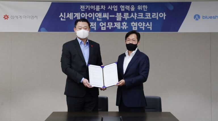 신세계아이앤씨, 친환경 모빌리티 시장 공략, 블루샤크코리아와 MOU 체결