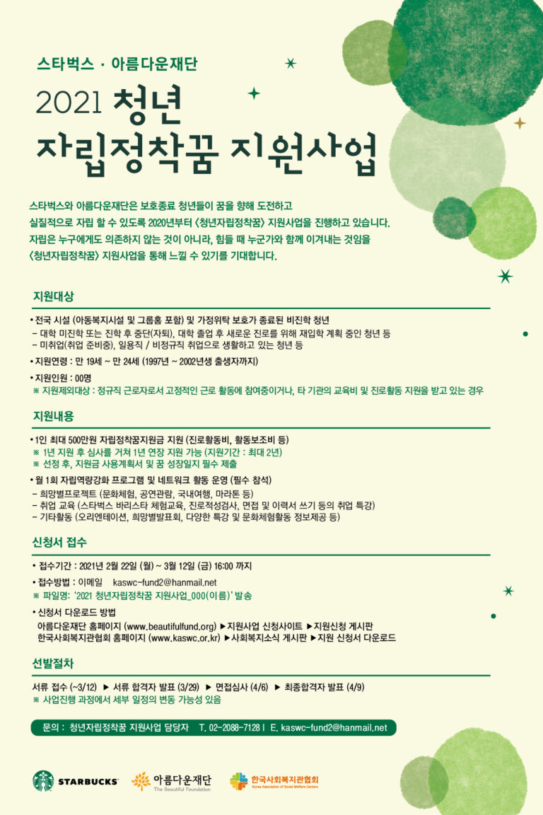 스타벅스, 아름다운재단과 함께 청년 자립 돕는 보호종료청년 지원사업 전개