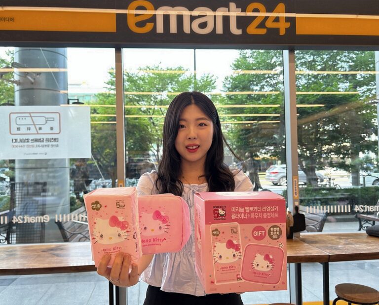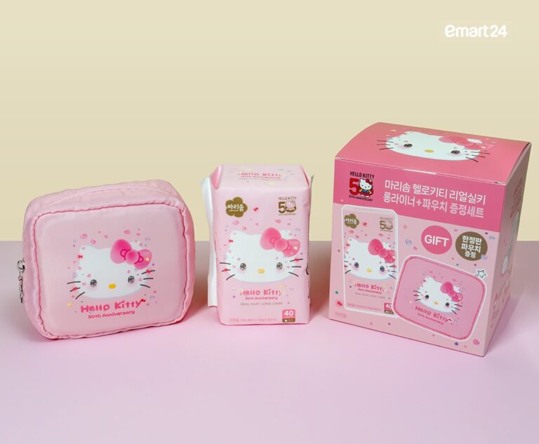 헬로키티 캐릭터 탄생 50주년 기념! 이마트24, 헬로키티 생리대와 파우치 기획상품 업계 단독 판매!