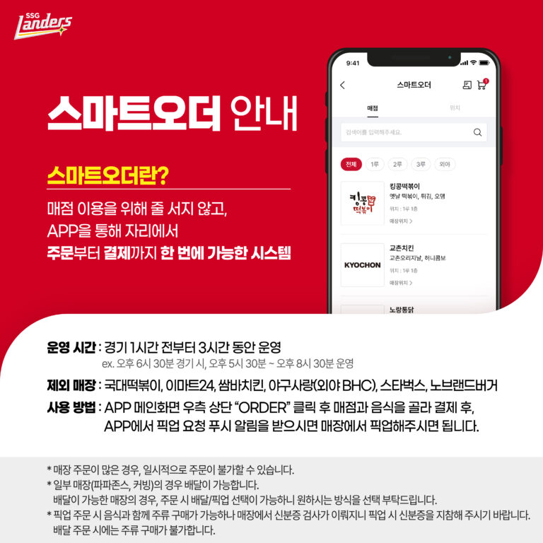 SSG랜더스, 줄 서지 않는 매점 ‘스마트오더’ 앱 서비스 출시