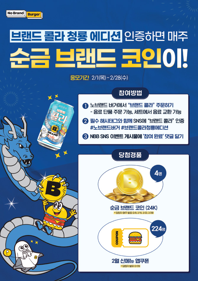 ‘콜라에 청룡이 나르샤’… 노브랜드 버거, ‘브랜드 콜라’ 청룡 에디션 출시