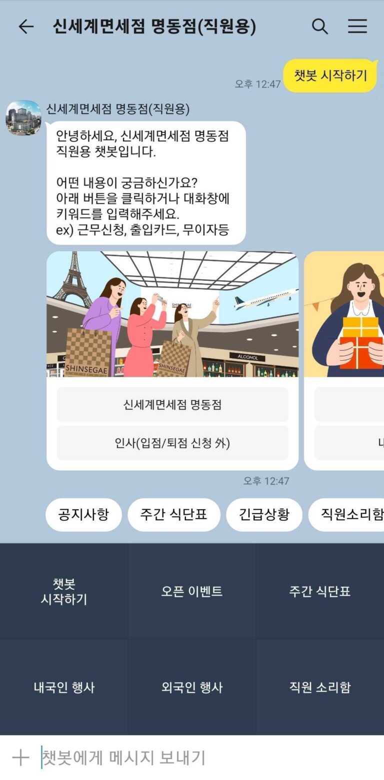 신세계면세점, 24시간 현장 지원 챗봇 도입