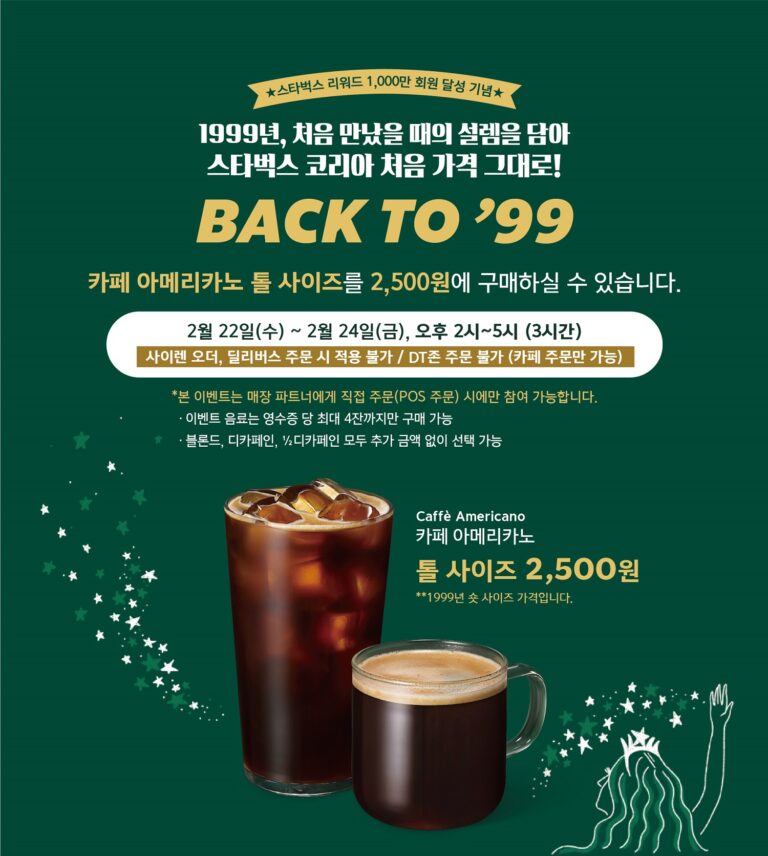 스타벅스, 응답하라 1999, 스타벅스 아메리카노를 처음 가격 그대로!