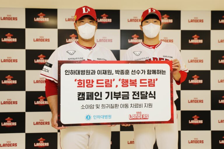 SSG랜더스 이재원, 박종훈, 희귀병 아동 치료를 위한 기부금 전달