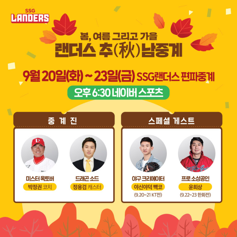 SSG랜더스, 구단 편파중계인 ‘랜더스 추(秋)남 중계’ 진행