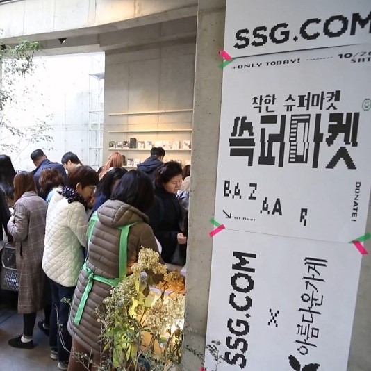 착한 가격에 상품 구매하고 착한 기부도 할 수 있는 쓱퍼마켓이 열렸습니다! 최신 유행하는 레트로 감성을 담아 젊은 세대까지 취향저격!