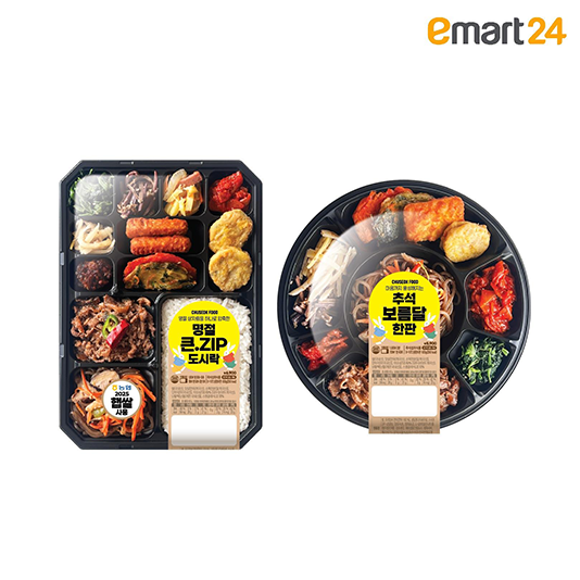 긴 추석 연휴, 편의점에서 명절 음식 즐겨요! 이마트24, 추석 명절도시락과 즉석식 선보여이마트24가 추석을 앞두고 명절도시락과 명절 즉석식을 선보인다. 이마트24는 명절 대표 음식으로 구성한 ‘추석명절큰.Zip’도시락(6,900원)과 ‘추석보름달한판(5,900원)’을 이달 30일(화) 선보인다. ‘추석명절큰.Zip’도시락은 명절날 큰집에서 먹던 명절상을 도시락 하나에 압축했다는 의미를 담아 위트 있게 상품명을 지었다. 이번에 선보이는 상품은 잡채, 불고기 등 명절 대표음식을 메인으로