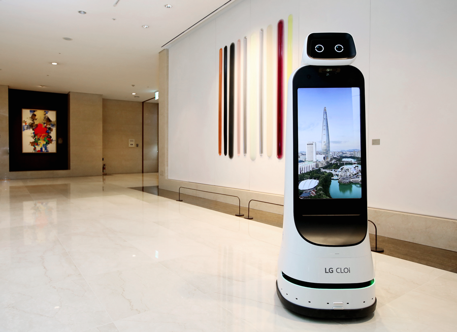 롯데호텔 월드는 로비에서 고객을 맞이해주는 ‘LG 클로이 가이드봇(이하 가이드봇)’을 도입해 호텔의 주요시설 및 주변 관광지 정보 안내 등 맞춤 컨시어지 서비스 뿐만 아니라 호텔 로비 곳곳에 전시되어 있는 예술 작품을 설명해주는 도슨트 서비스까지 제공하고 있다. 피터 알렉산더 작품 외에 4명의 유명 작가 작품들을 관람하고, 이해할 수 있어 정서적 휴식이 가능하다. 이처럼 직원의 도움 없이 다양한 콘텐츠로 언택트 호캉스를 즐길 수 있다.