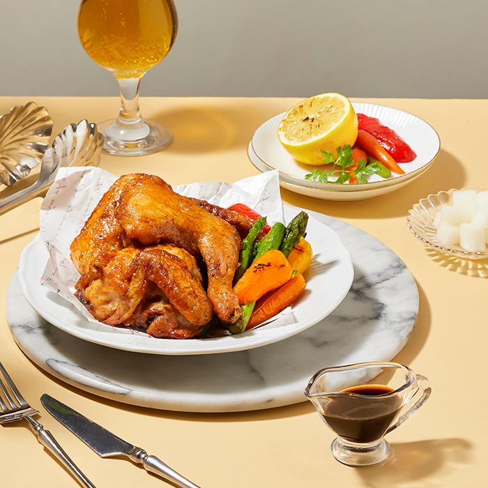 신선한 국내산 삼계닭만을 사용했으며 통마리 닭을 4조각으로 절단 후 텀블링으로 염지하고 속살까지 밑간하여 부드러우면서 담백한 맛을 구현했다. 고온의 오븐으로 구워내 육즙을 가둬 겉은 바삭하고 속은 촉촉한 맛을 담았고 여기에 조선호텔 특제 레시피로 만든 치킨간장소스가 동봉되어 프리미엄 치킨의 맛을 느낄 수 있다.