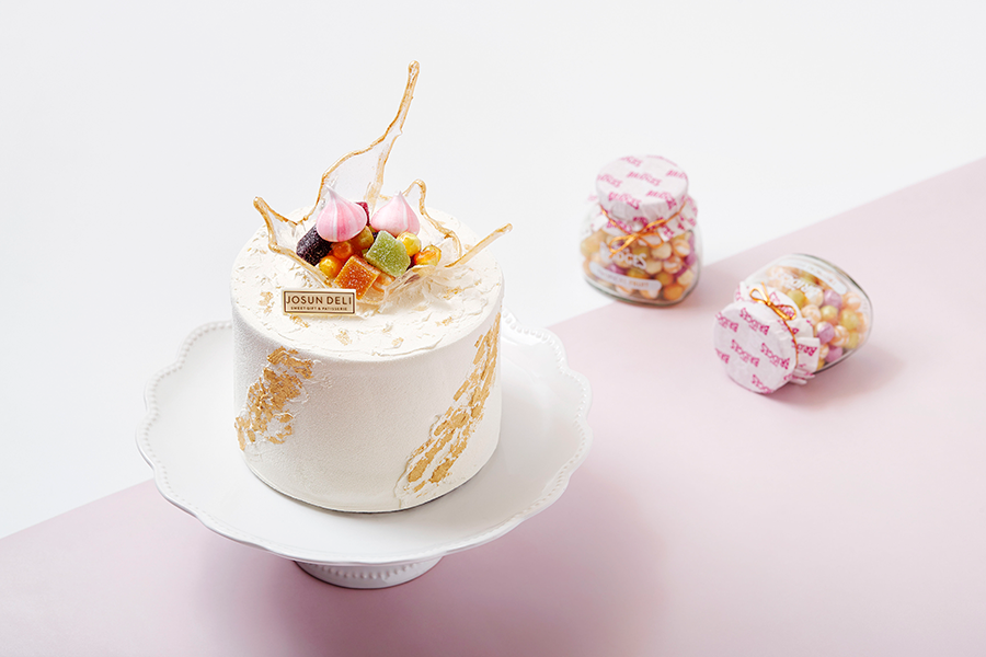 케이크 위에 설탕공예로 바구니를 만들어 미세스 브릿지 사탕과 파티시에가 직접 만든 청사과, 망고, 딸기, 블루베리 수제 젤리와 핑크빛 머랭을 담아 로맨틱 무드를 연출했다.