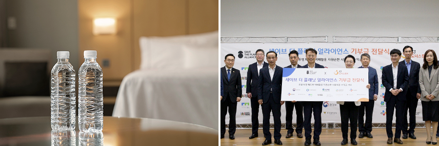 ‘세이브 더 플래닛 얼라이언스’ 캠페인은 환경부 주관으로 호텔에서 배출되는 생수 페트병을 깨끗하게 보관 및 회수, 재활용하여 지속 가능한 자원 선순환에 기여하고자 하는 취지로 기획되어 지난해 12월부터 6개월간 시범 사업으로 진행되었다.