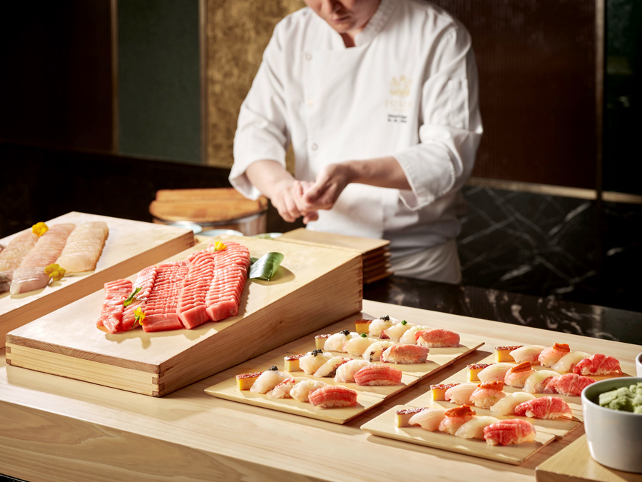 도미, 아까미, 연어, 단새우, 교쿠, 광어, 흰돗대기 새우, 우니 등 대중적으로 사랑받는 스시를 비롯해 약 10여종의 프리미엄 스시까지 다양하게 맛볼 수 있다. (평일 디너 및 주말 런치/디너 이용 고객 한정)