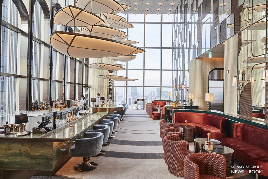 24F에는 남산타워가 한 눈에 보이는 1914 라운지앤바가 있다. 취재 당시 가장 오래 머문 곳이다. 담고 싶은 그림이 많았기도 했지만, 이 공간은 사람을 머무르게 만드는 힘이 있다. 이유는 9m 층고의 창으로 보이는 서울의 전경이다. 창으로 쏟아져 들어오는 빛, 발 아래로 펼쳐진 서울의 풍경, 노을로 물드는 하늘 등등. 그야말로 ‘뷰멍’을 하기에 최적의 장소다. 이곳에 있던 많은 사람들은 창을 등지고 서로 사진을 찍어주며 시간을 보내고 있었다.