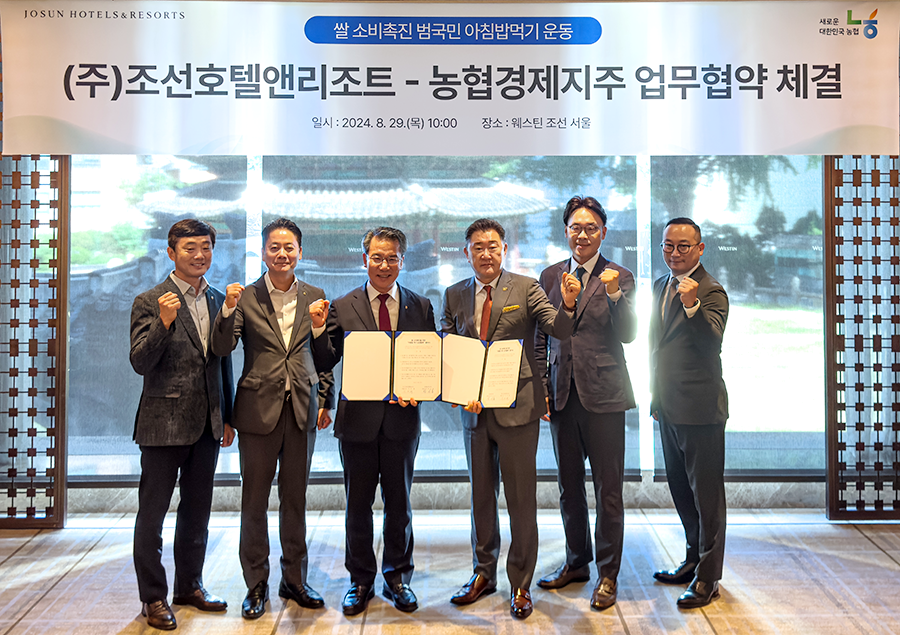 8월 29일(목) 서울 웨스틴 조선 서울 2층 코스모스 홀에서 진행된 업무협약식을 통해 조선호텔앤리조트는 농협경제지주를 통해 공급받은 쌀과 현물을 활용해 임직원들을 위한 아침밥 제공 및 쌀 나눔 행사를 추진하는 등 쌀 소비 촉진을 위해 적극 협력할 예정이다.