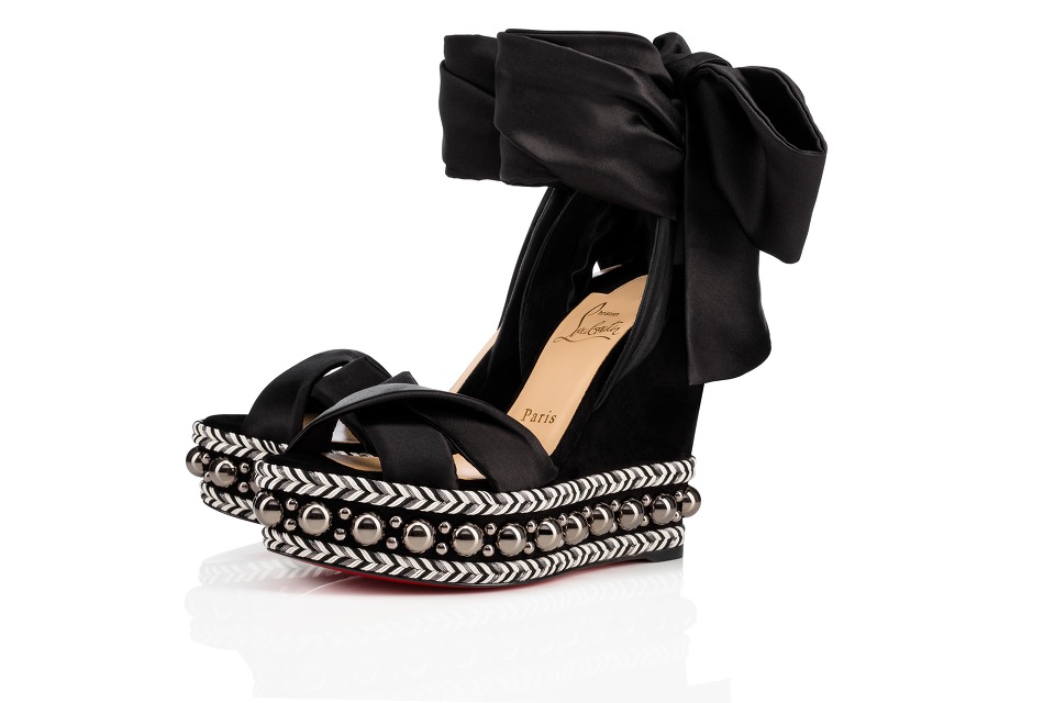 피라클루(Pyraclou)는 사각뿔 형태의 스터드가 적용돼 더 견고하고 강렬한 느낌을 준다. 기본 가죽 소재와 데님 소재 두 가지로 만나볼 수 있으며 모두 6cm의 웨지힐을 적용했다.