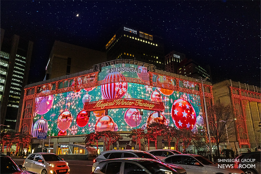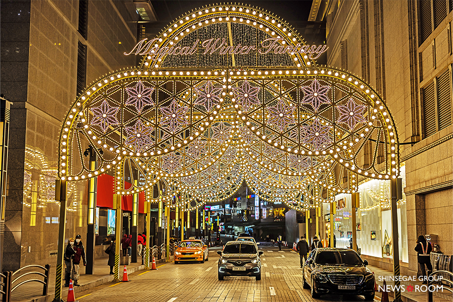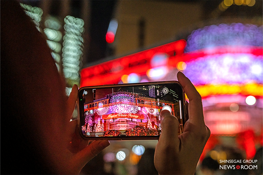 11월 30일 오후 5시 30분, 일몰 무렵 명동 우체국 앞으로 사람들이 하나둘 모이기 시작한다. 올겨울 첫 기록적인 한파가 예보된 날임에도 꽁꽁 언 손을 불며 무언가를 기다리는 시민들의 얼굴에는 설렘이 가득하다. 잠시 후 건너편 신세계 본점 본관 외벽이 빛으로 뒤덮이고 캐럴이 울려 퍼지며 화려한 쇼가 펼쳐진다. 명동 거리는 이내 크리스마스 무드가 물씬 풍기는 거대한 갤러리로 변신한다.