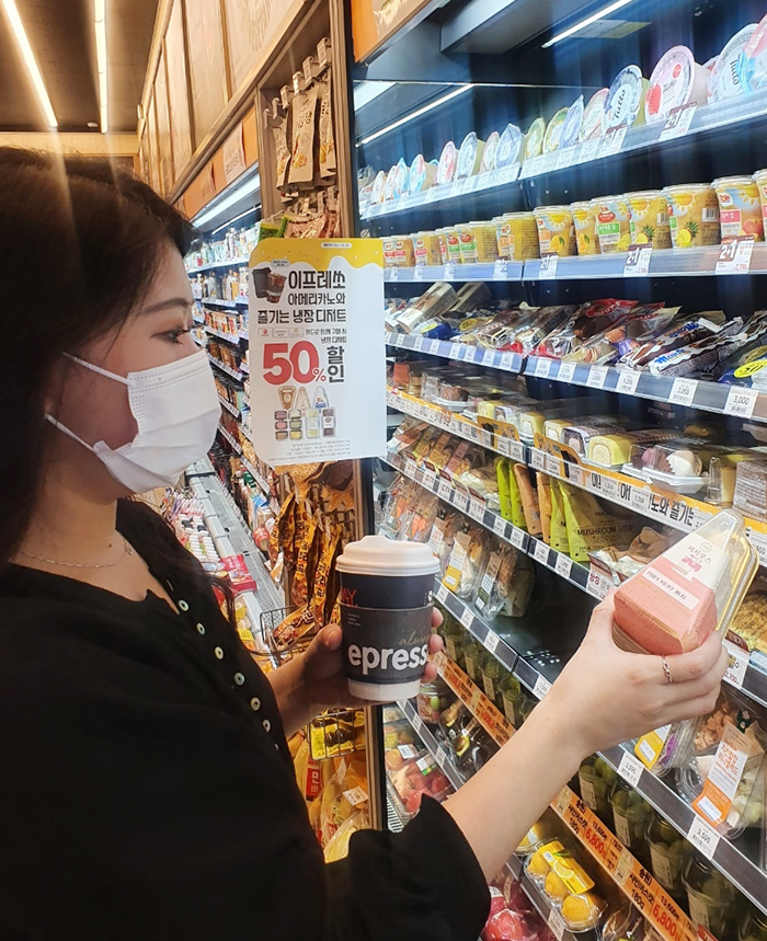 이마트24가 ‘딜리셔스 아이디어’의 일환으로 원두커피 이프레쏘(이하, 이프레쏘)구입 시 디저트를 반값에 제공한다.