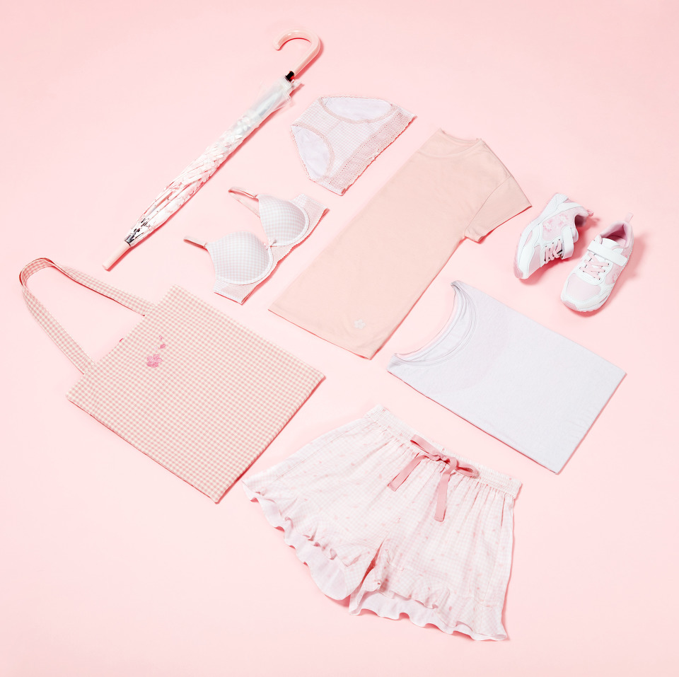 대표 상품으로는 체리블라썸 돔 우산을 16,800원과 19,800원에 2종을 준비했고, 에코백은 16,800원, 아동용 운동화는 25,800원에 기획했다. 가까운 집 앞 외출이나 실내에서 편안한 휴식에 적합한 라운지웨어도 체리블라썸 디자인을 담아 9,980원부터 19,800원에, 코튼소재의 브래지어와 팬티도 각 14,800원, 5,980원에 선보인다.