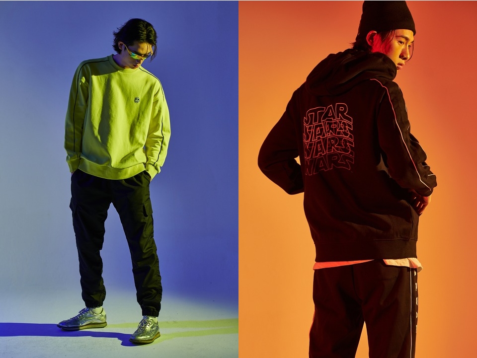 이번 컬렉션은 맨투맨과 후디, 후드 집업, 트레이닝 셋업 등 최근 밀레니얼 세대가 즐겨 입는 제품들로 구성했다. 모든 제품은 여유로운 루즈 핏으로 편안한 착용감과 활동성을 강조했다.
