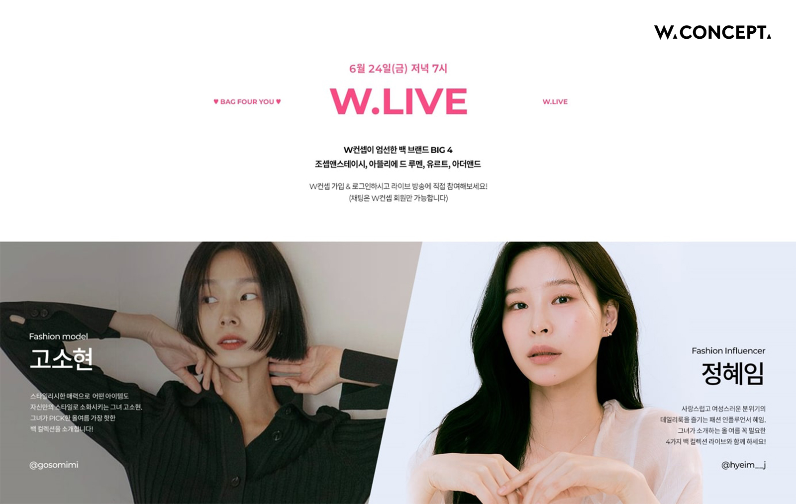 W컨셉, 디자이너 브랜드 가방 라이브방송…올 여름 인기 백(BAG) 트렌드 소개
