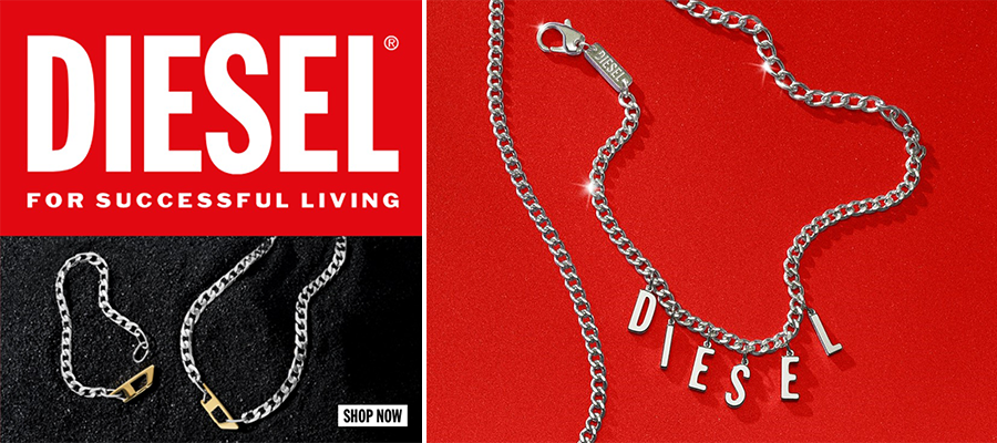 디젤 주얼리는 브랜드 특유의 과감하면서도 대담한 디자인을 선보이며 자유분방한 젠더리스(Genderless) 패션을 이끌고 있다. 최근 유행하고 있는 다양한 데님 진이나 자켓, 그래픽 패턴의 티셔츠와 팬츠 등과 잘 어우러져 더욱 인기다. 국내에서 쉽게 구할 수 없어 일본까지 원정 쇼핑하는 국내 2030소비자가 있을 정도.