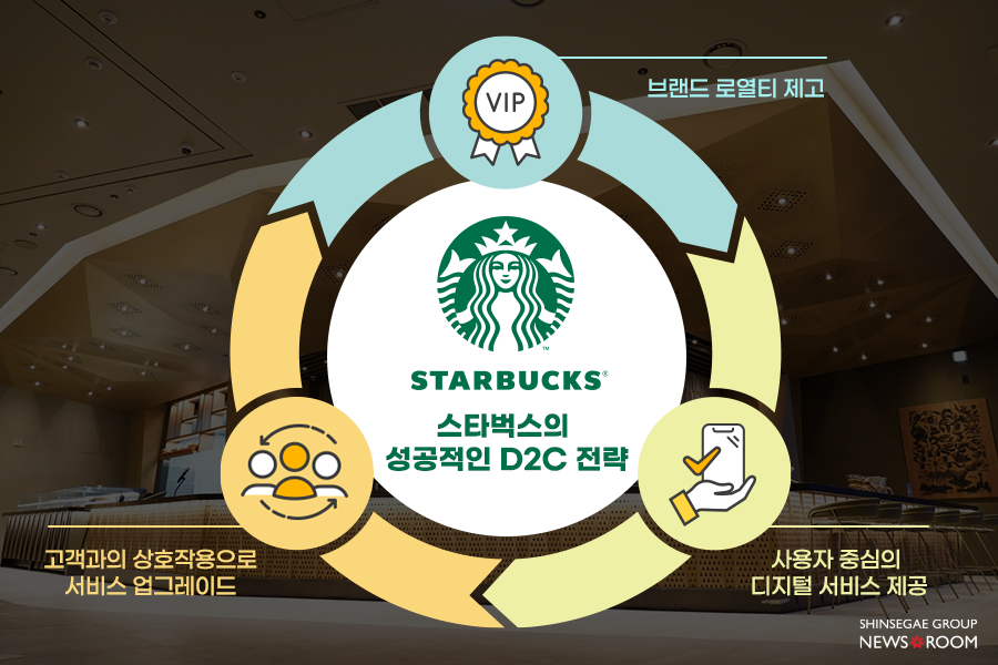 신세계그룹에서도 성공적인 D2C 사례를 찾아볼 수 있다. 스타벅스 코리아는 수년 전부터 오프라인 매장을 거점으로 DT 전략을 구축해왔다. 자체 앱을 통해 사용자 중심의 디지털 서비스를 제공하는데 초점을 맞췄다. 사이렌 오더를 시작으로 확실한 편의 제공을 통해 고객들에게 우수한 브랜드 경험과 가치를 전달했다. 이는 자연스럽게 고객 충성도 확보로 이어졌고, 앱은 고객과의 상호작용이 가능한 공간이 되었다. 2021년 12월에는 약 40만 명의 고객이 참여한 푸드 개발 이벤트를 통해 탄생한 ‘별의별 샌드위치’가 실제 출시되기도 했다.