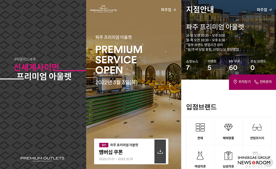 이 곳은 신세계사이먼이 또 한 번 ‘최초’의 공식을 쓰고 있는 장소이다. 전점 통합형 VIP 고객 멤버십, ‘프리미엄 서비스’를 선보인 것이다. 여주점, 부산점에 이어 파주점이 나섰고, 하반기 중에는 시흥점까지 확대하여 ‘VIP 서비스 인프라’가 전 점에 구축되는 업계 최초 사례를 또 한 번 써내려갈 예정이다.
