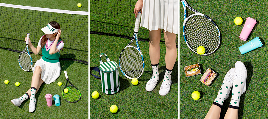 럭키 르 매치(Lucky Le Match) 컬렉션은 일상과 스포츠의 경계를 없앤 산뜻한 컬러와 실용적인 디자인으로 테니스를 비롯해 다양한 필드 스포츠룩을 선보이고 있다.
