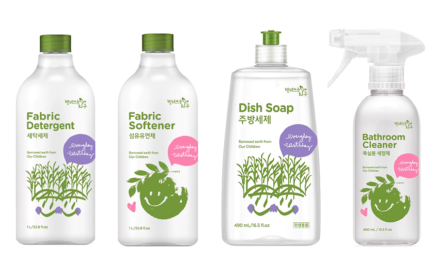 ‘빌려쓰는 지구’ 4종의 용기는 무색의 투명 플라스틱으로 재활용이 용이하며, 원료의 약 20%가 사탕수수 유래 성분으로 구성된 ‘바이오 페트(Bio PET)’ 용기다. 일반적인 플라스틱 페트 대비 제조 과정에서 배출되는 탄소량이 적은 것이 특징이다.